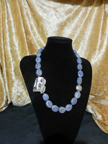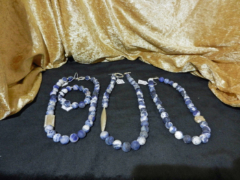 Überwiegend fertigt Erich Löger Schmuck für Damen in Form von Halsketten und dazu passenden Armbändern aus Halbedelsteinen und Silber. Jedes Stück ist ein Unikat. Er fertigt auch Schmuck nach Wunsch seiner Kunden.